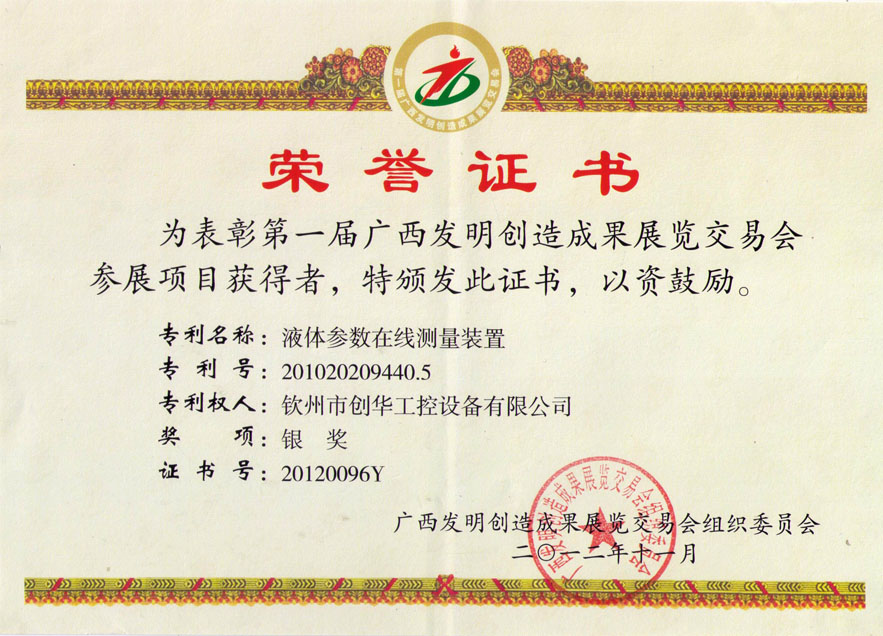 廣西發(fā)明創(chuàng)造成果展覽銀獎