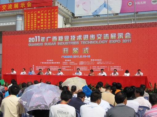 2011年5月18-19日,廣西首屆糖業(yè)技術(shù)進(jìn)步交流展示會(huì)(簡(jiǎn)稱(chēng)“糖業(yè)技術(shù)展示會(huì)”)在南寧舉行。該展示會(huì)由廣西壯族自治區(qū)糖業(yè)發(fā)展局主辦,廣西糖業(yè)協(xié)會(huì)、廣西制糖學(xué)會(huì)、廣西甘蔗學(xué)會(huì)和廣西機(jī)械工業(yè)研究院共同承辦。參加糖業(yè)技術(shù)展示會(huì)的單位有:廣西壯族自治區(qū)工信委、農(nóng)業(yè)廳、農(nóng)機(jī)局等區(qū)直單位;廣西區(qū)內(nèi)主產(chǎn)糖市糖業(yè)發(fā)展局(糖辦);廣西區(qū)內(nèi)制糖企業(yè);國(guó)內(nèi)外參展企業(yè);中國(guó)糖業(yè)協(xié)會(huì)和廣東、云南、海南三省糖業(yè)協(xié)會(huì)等。到會(huì)領(lǐng)導(dǎo)主要有中國(guó)農(nóng)業(yè)科學(xué)院甘蔗研究中心主任李楊瑞、中國(guó)糖業(yè)協(xié)會(huì)副理事長(zhǎng)兼秘書(shū)長(zhǎng)閆衛(wèi)民、廣西糖業(yè)發(fā)展局副局長(zhǎng)劉全躍、張魯賓等。會(huì)議規(guī)模500多人,是廣西糖業(yè)發(fā)展上規(guī)模最大的一次盛會(huì)。