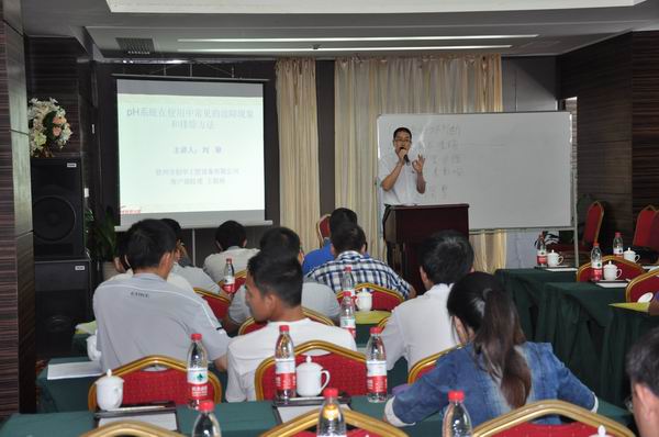 這次培訓(xùn)主要以創(chuàng)華工控pH自控系統(tǒng)系列產(chǎn)品為主,結(jié)合生產(chǎn)工藝,從理論到實際、系統(tǒng)結(jié)構(gòu)圖到實物,圍繞如何更好操作和維護(hù)設(shè)備展開講解,主要內(nèi)容有《玻璃電極的使用和維護(hù)》、《pH自控系統(tǒng)電路原理分析》、《pH自控系統(tǒng)故障分析和排除》等。培訓(xùn)還邀請了著名制糖專家—廣西大學(xué)食品工程學(xué)院周少基教授及糖廠pH自控系統(tǒng)第一人—華南理大學(xué)黃揚(yáng)明博士就《蔗汁澄清與控制》和《可靠性工程與產(chǎn)品研制》等方面內(nèi)容進(jìn)行了講解。